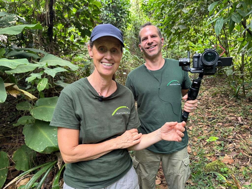 Vor Kurzem konnten wir diese Partnerschaft auch persönlich vertiefen: Katja Wiese (Geschäftsführerin und Gründerin von NatureFund e.V.) besuchte La Gamba und gewann vor Ort einen unmittelbaren Eindruck von der Vielfalt und Bedeutung der Region. Gemeinsam mit Anton Weissenhofer erkundete sie die Gegend rund um die Tropenstation La Gamba und besuchte zentrale Projektflächen. Die Begeisterung war spürbar – für die beeindruckende Biodiversität ebenso wie für das langfristige Engagement unseres Vereins.